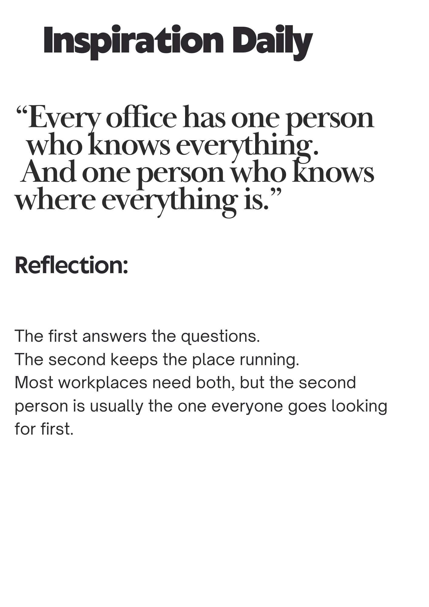 This is what we leave you with. A thought to end the day, carry in your pocket, or come back to later. Nothing big. Just something to reflect on.